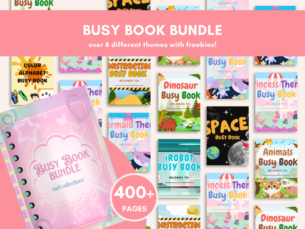 Eight (8) variations of busy book themes with a Color Alphabet and Kids Activity busy book plus four (4) additional digital products only for you and your kids!